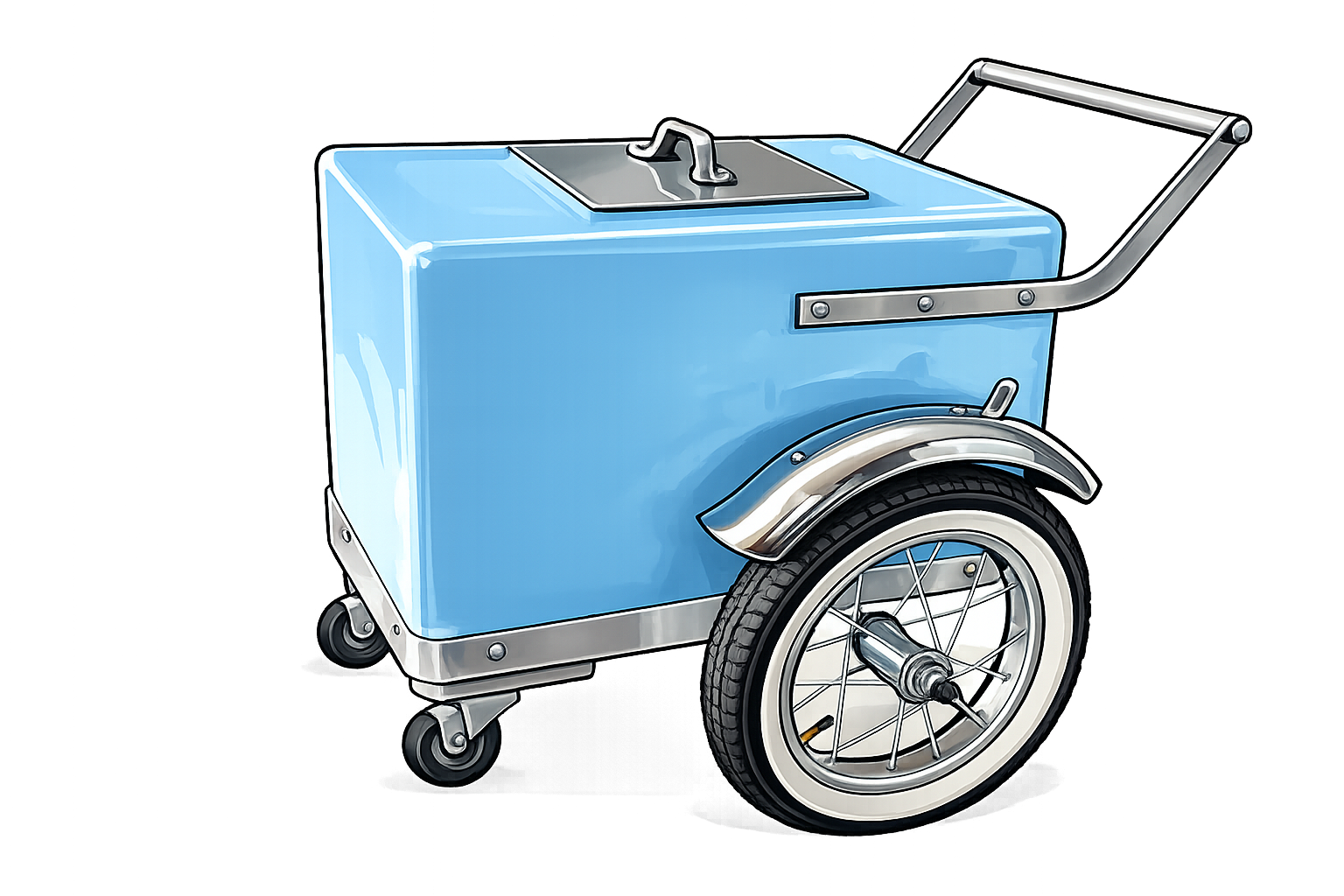 We deliver our cute cart to you! Fill the cooler with your own favorite treats like ice cream, soda or popsicles.